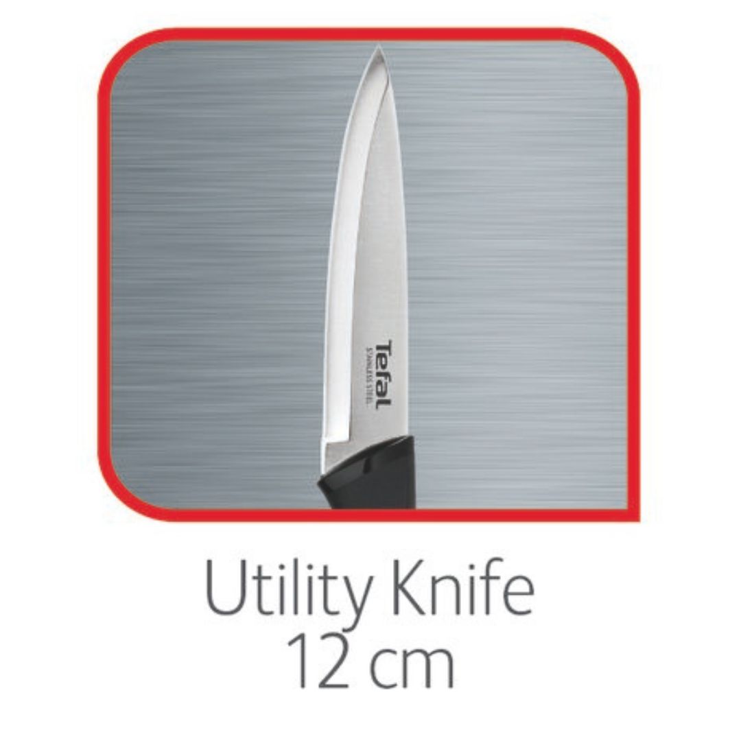 Tefal Comfort – Couteau Universel 12 cm : Lame en acier inoxydable, performance de coupe élevée , manche ergonomique Soft Touch , protège-lame de sécurité – Référence K2213904